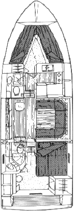 mit Doppelbett und Büroecke Bugkabine mit zwei Einzelbetten Mittelquadrat : Essecke in Doppelbet umwandelbar |